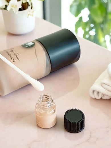 INCI: AQUA, COCO-CAPRYLATE, CI 77891, POLYGLYCERYL-3 POLYRICINOLEATE, ETHYLHEXYL PALMITATE, UNDECANE, GLYCERIN, PROPYLENE GLYCOL, SILICA, DISTEARDIMONIUM HECTORITE, TRIDECANE, POLYGLYCERYL-3 DIISOSTEARATE, CI 77492, POLYGLYCERYL-4 CAPRATE, SODIUM CHLORIDE, MICA, POTASSIUM SORBATE, SODIUM DEHYDROACETATE, CETYL ALCOHOL, ALUMINIUM HYDROXIDE, CI 77491, CI 77499, SODIUM LAUROYL GLUTAMATE, BRASSICA CAMPESTRIS (RAPESEED) SEED OIL, LYSINE, MAGNESIUM CHLORIDE, LAUROYL LYSINE, LINUM USITATISSIUM SEED OIL, ROSMARINUS OFFICINALIS LEAF EXTRACT, ALOE BARBADENSIS LEAF EXTRACT, CURCUMA LONGA ROOT EXTRACT